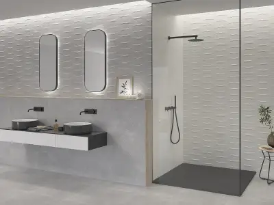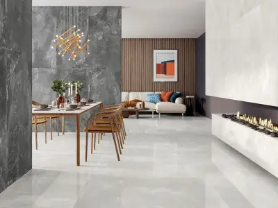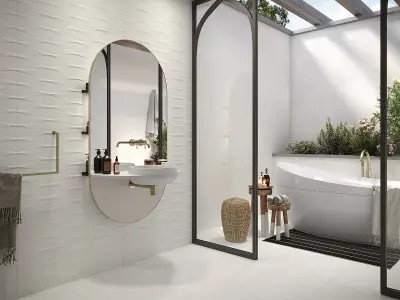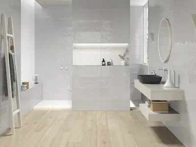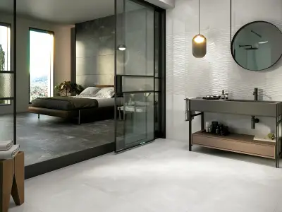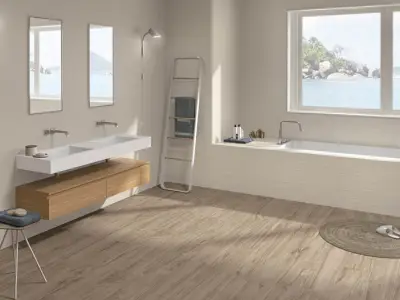 Azulev — испанская фабрика с заметным чувством стиля: плитка у них проработана не только визуально, но и тактильно — зернистые мраморы, бархатистый бетон, аккуратная имитация древесины и нежные матовые поверхности. Внешне изделия выглядят современно и спокойно, без навязчивых рисунков, зато с продуманной фактурой, которая «оживляет» пространство.