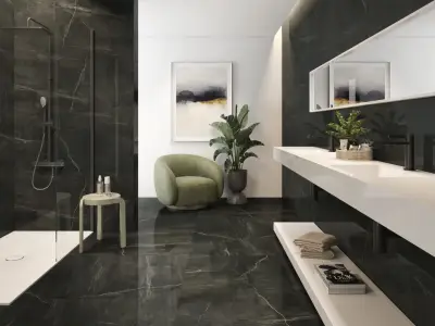 Мы работаем с испанской фабрикой Jano tiles, которая славится живыми фактурами и аккуратной техникой: керамогранит с натуральной текстурой камня и дерева, большие форматы, матовые поверхности и ровная калибровка. Плитка выглядит как продуманная мебельная деталь — спокойные оттенки, фактуры с глубиной, которые меняют настроение комнаты при разном свете.